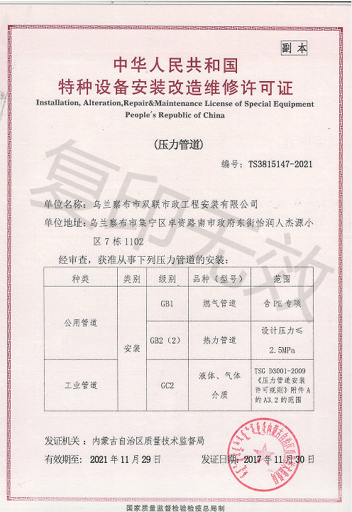 烏蘭察布市雙聯(lián)市政工程安裝有限公司